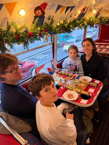 London (again): Christmas. We had Christmas with my aunt Jacqui's family and my cousins. We also went on the Paddington high tea bus tour, iceskating, and saw Matilda the Musical.